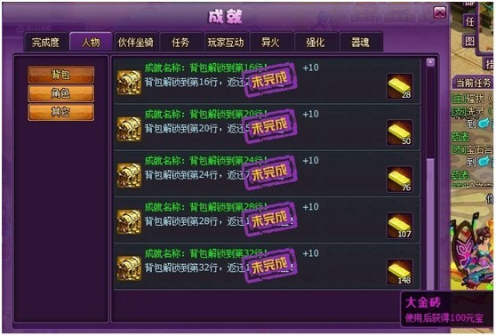 4) 改版了新的背包扩充成就
