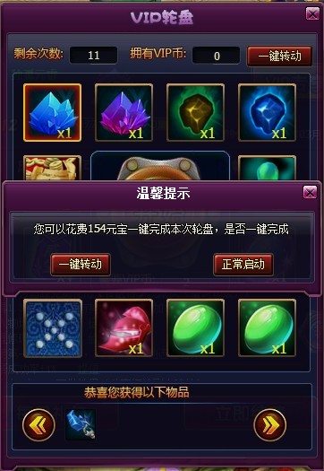 增加一键转动轮盘的功能:自动完成当前剩余的轮盘转动次数,优先使用vip币。
