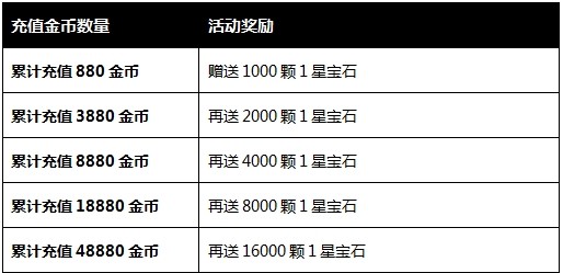 充值金币累积一定数量赠送海量宝石,以下奖励可累计获得。