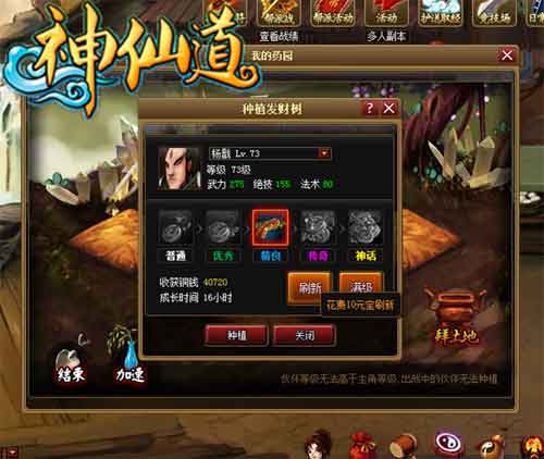 陪游神仙道药园种植有两种模式,一种是种经验树,另一种是种发财树。