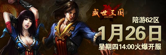 陪游《盛世三国》62区将于1月26日下午14:00震撼开启,与此同时,我们还为各位玩家准备了丰富的活动和好礼,助英雄们驰骋沙场!
