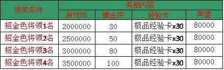 【活动内容】:活动时间内招募金色武将满足以下条件即可获得相应的礼包奖励