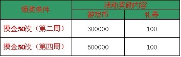 【活动内容】:活动时间内,每日摸金满50次即可领取丰富奖励一份。